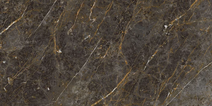 a Faenza Aesthetica Marrone Grigio 60×120 cm (AE-GOL6-12-RM) je elegantna porcelanska pločica velikog formata sa prirodnim kamen-/mermernim efektom u toplim smeđe-sivim tonovima.