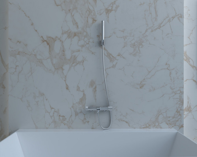 Baterija za kadu COPEN NOOK u elegantnom hromiranom finišu, sa mešačem Ø35 i Neoperl perlatorom sa limitiranim protokom od 9 L/min, štedi vodu i smanjuje troškove.