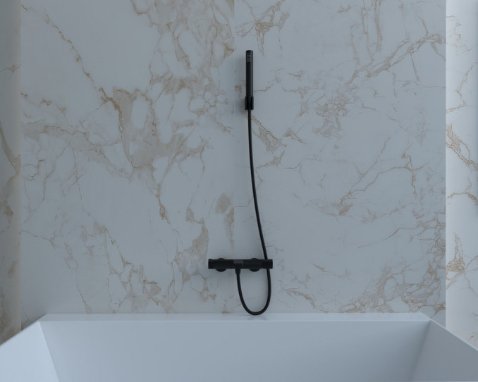 Baterija za kadu COPEN NOOK u elegantnoj mat crnoj boji, sa mešačem Ø35 i Neoperl perlatorom sa limitiranim protokom od 9 L/min, štedi vodu i smanjuje troškove.