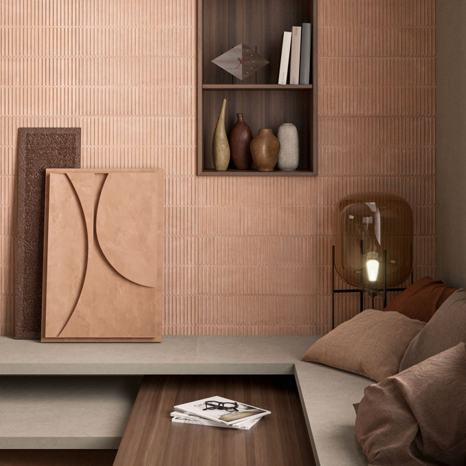 Piemme Homey Powder Matt dekorativne keramičke pločice sa 3D-“brick/stripes” reljefom i belom mat glazurom koja unosi dinamičnost i moderan karakter zidu.