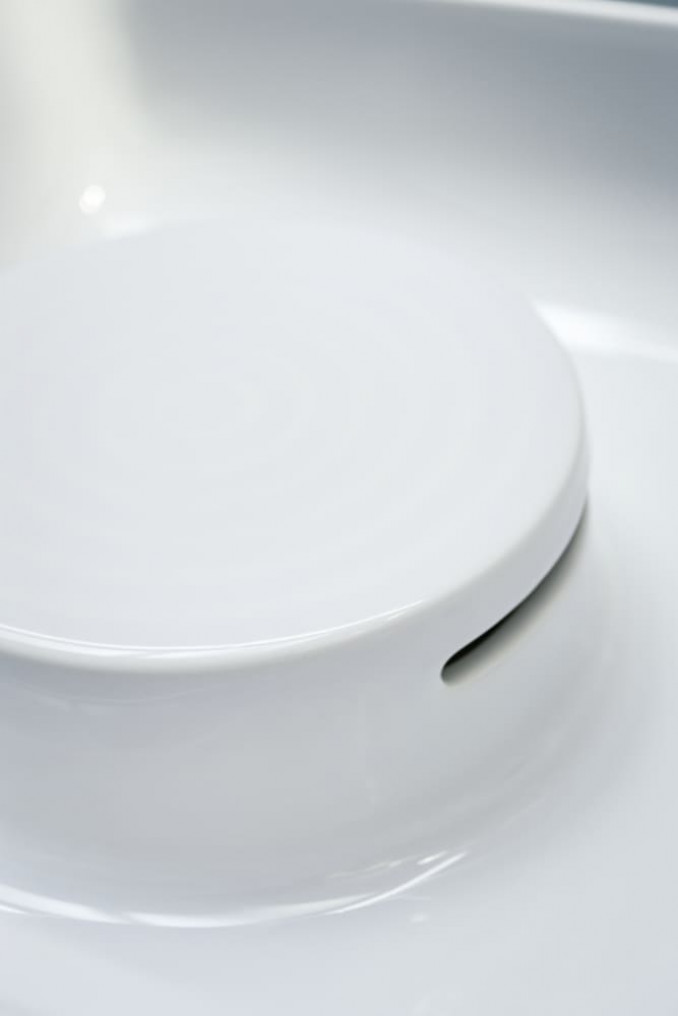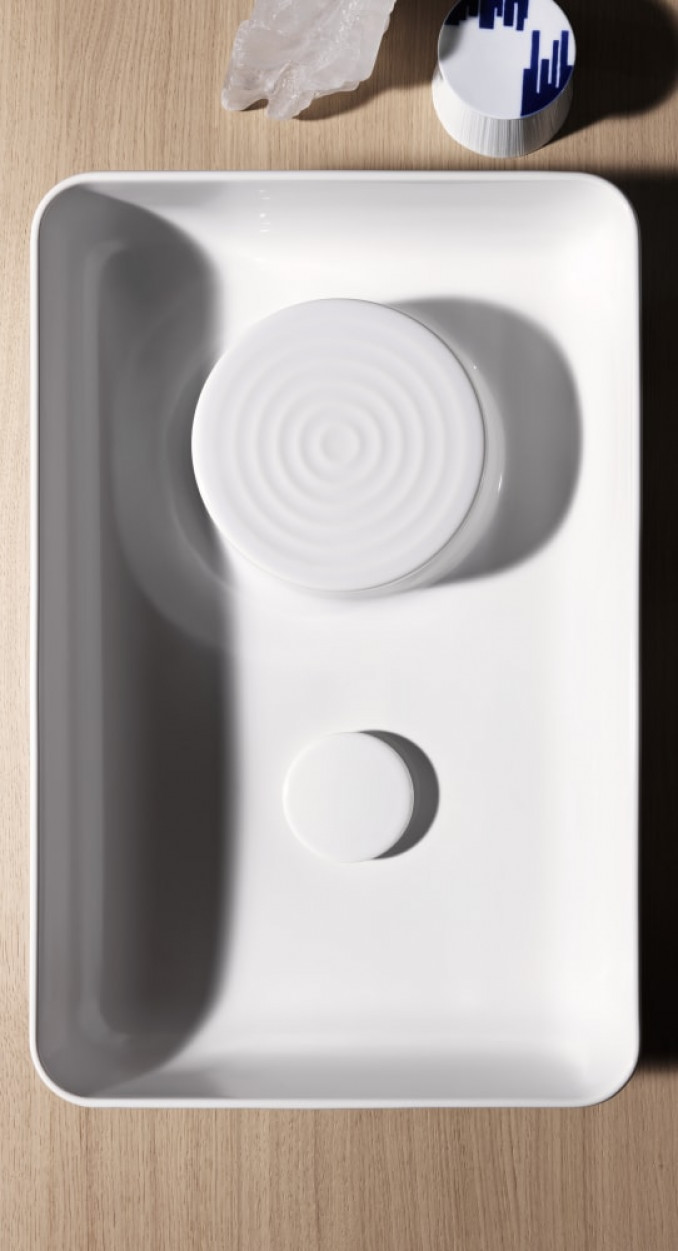Izrađen je od inovativnog materijala SaphirKeramik, koji omogućava izuzetno tanke ivice, visoku čvrstoću i elegantan izgled. Lavabo je predviđen za postavljanje na ploču (countertop) kao nadgradni lavabo, što doprinosi modernom i luksuznom izgledu kupatila.