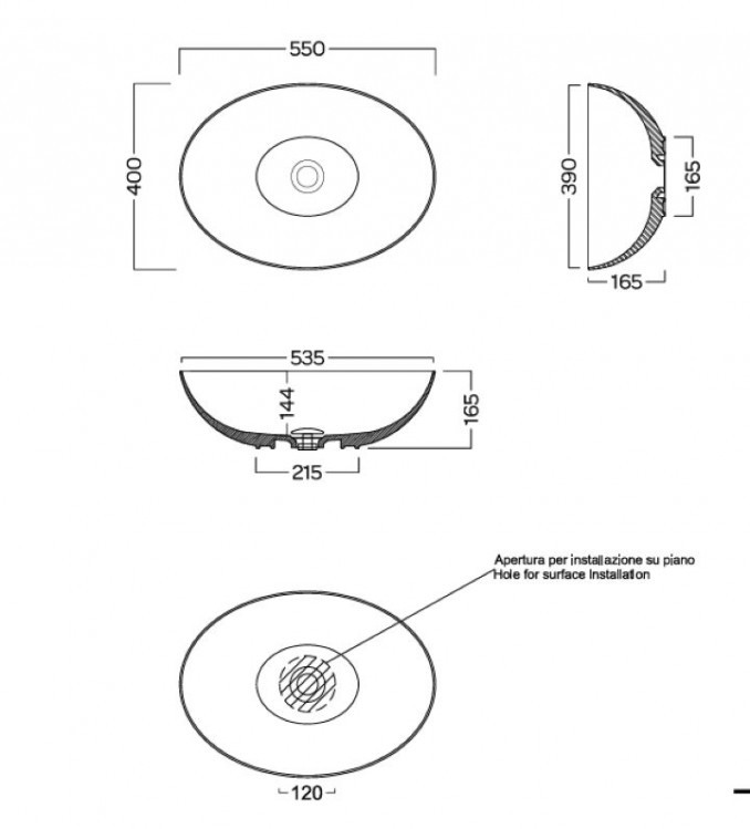 Lavabo nadgradni HATRIA HAPPYHOUR SLIM 00:00 550x400x165 petrol glossy