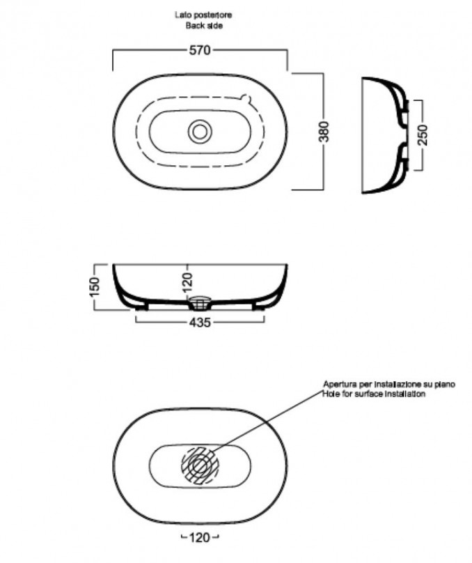 Lavabo nadgradni HATRIA HAPPYHOUR SLIM 12:00 570x380 glossy sugar paper