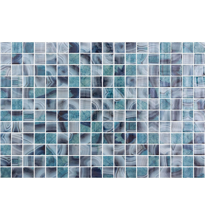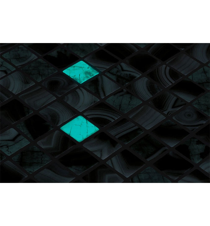 Boreno Luminis – tirkizno-sivi stakleni mozaik 25×25 mm sa sjajnom površinom i luminescentnim svetlucanjem. Lepota koja blista i danju i noću.