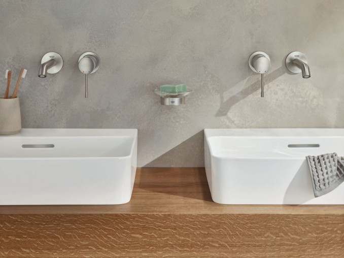 Kombinujte minimalistički dizajn i pouzdanu funkcionalnost sa GROHE ESSENCE M maskom za ugradnu bateriju za lavabo, dizajniranom za zidnu ugradnju