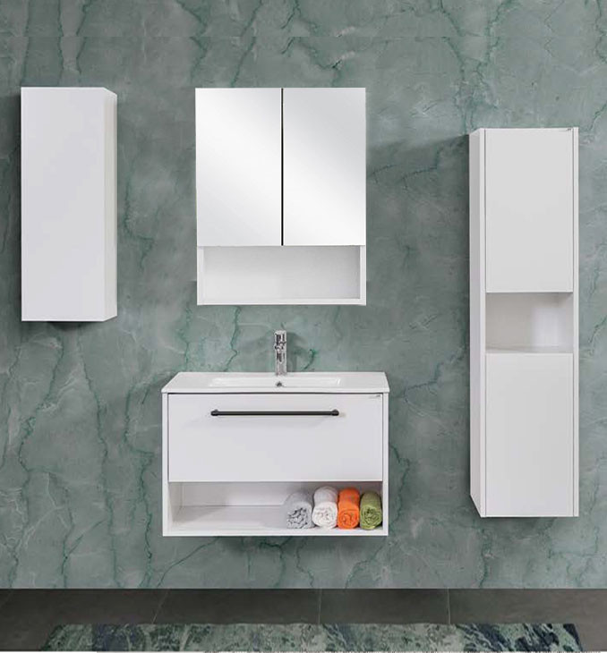 Izrađeno u elegantnoj beloj boji, ogledalo se lako uklapa u različite enterijere, dok čiste linije i moderan izgled unose svežinu i svetlinu u prostor. Iza ogledalne površine nalazi se funkcionalan prostor za odlaganje kozmetike i sitnica, što doprinosi boljoj organizaciji kupatila.