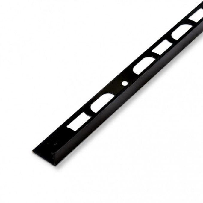 PROFILPAS PROANGLE L profil je aluminijumski završni profil namenjen zaštiti i estetskom završetku ivica keramičkih pločica. Sa plastificiranom završnom obradom u atraktivnoj Black ST nijansi, predstavlja savršen izbor za moderne i elegantne enterijere, naročito u kombinaciji sa tamnim ili kontrastnim pločicama.