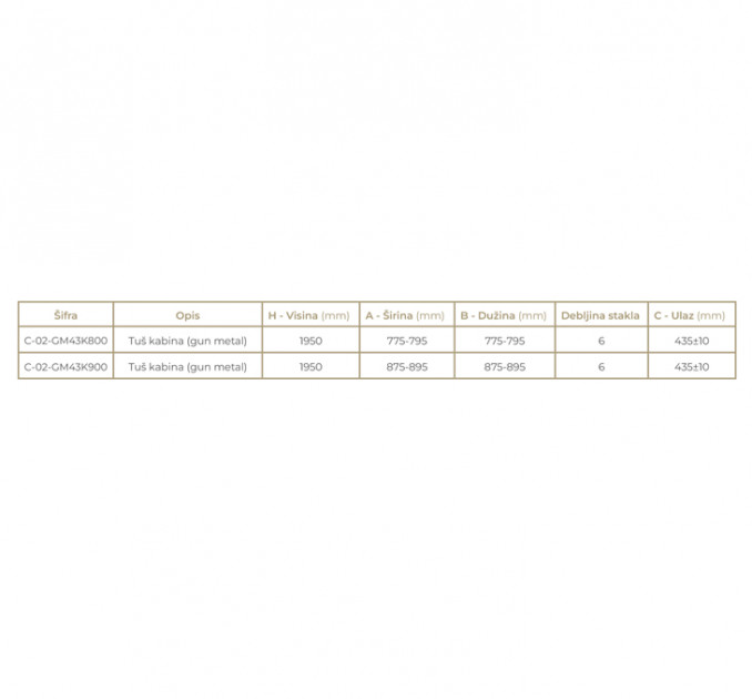 Tuš kabina COPEN ATLAS PRO dimenzija 800x800x1950 mm donosi eleganciju i funkcionalnost u vašu kupatilu. Sa svojim luksuznim gunmetal okvirom, ova kabina pruža sofisticiran izgled, dok 6 mm debelo providno kaljeno staklo osigurava trajnost i sigurnost.