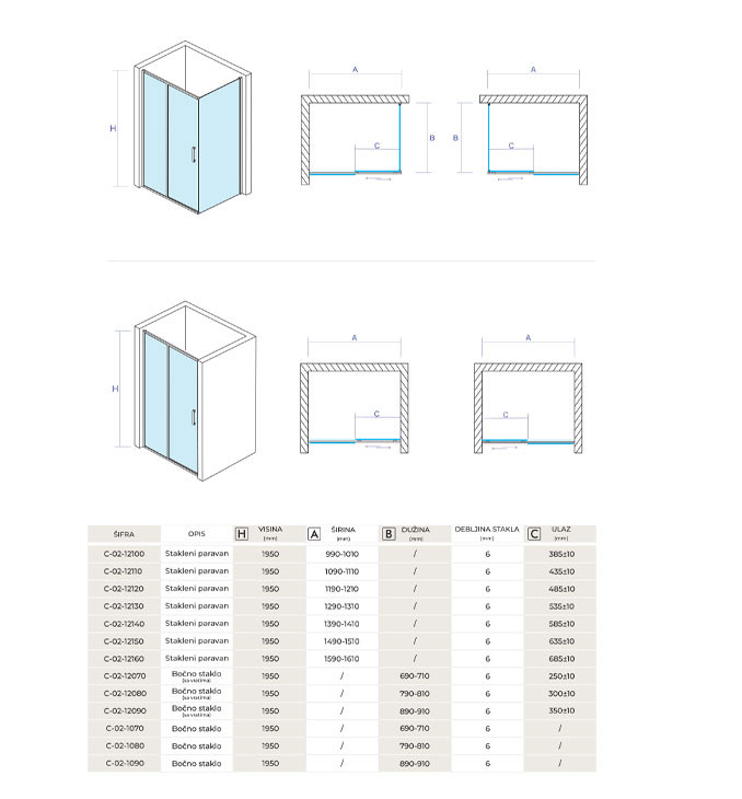 Dimenzije tuš kabine