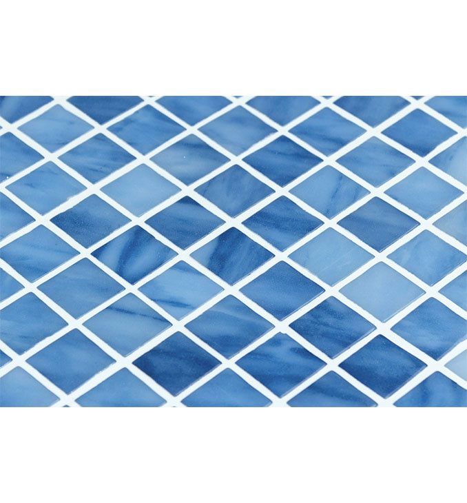 Blue Macauba – srednje plavi stakleni mozaik 25×25 mm sa sjajnom kamenom završnom obradom. Jednostavan, čist i savršen za plavi, osvežavajući bazen.
